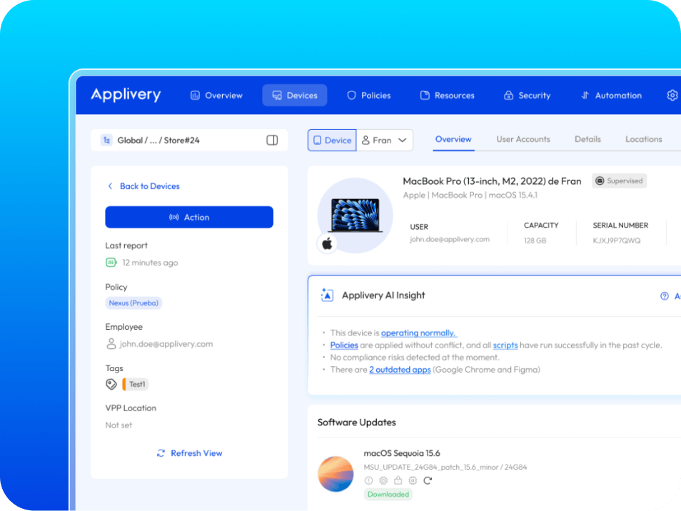 Plataformas como Applivery permiten precisamente eso, centralizar la gestión, automatizar el mantenimiento y ofrecer visibilidad real sobre el estado de cada dispositivo. En la práctica, no se trata de añadir nuevas herramientas o procesos, sino de gestionar mejor. Y ahí es donde empieza la sostenibilidad.